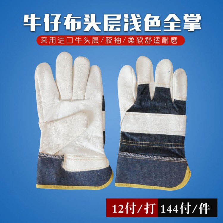 牛仔布頭層淺色全掌