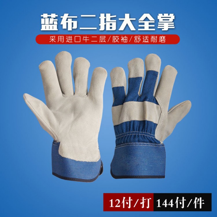 藍布二指大全掌電焊手套產品熱銷城市:山東,北京,浙江,杭州,濟南