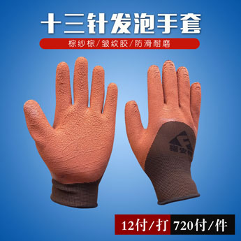 十三針發泡棕紗棕膠手套