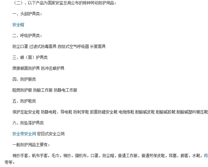 先明確說一下這個問題:1、法律定義講任何防護裝備都是勞保用品,甚至包括護膚霜;2、從學術講,各類安全帽、護目鏡、口罩、面罩、手套、防護服、靴子、安全繩都是;3、從現實采購講,一般生活日化用品都可以認為勞保用品,因為這個的管理在安監跟人保部。